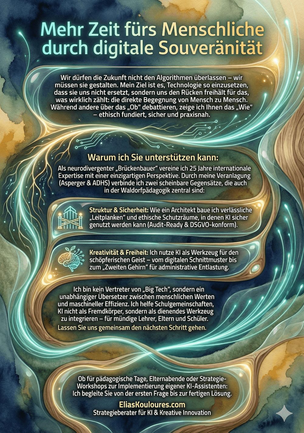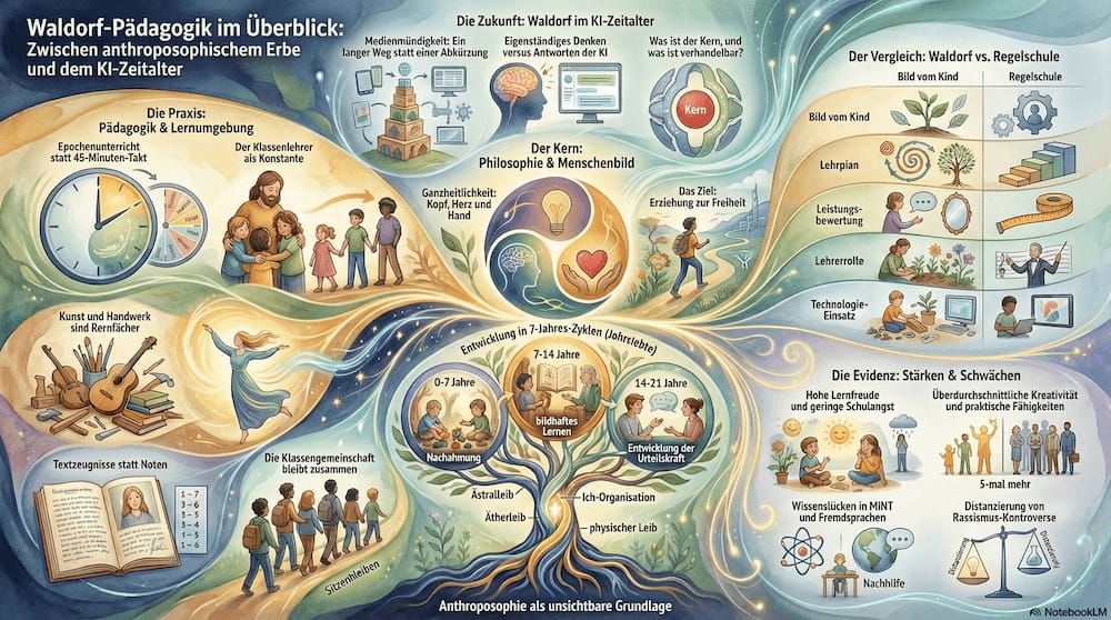 Ich habe als erstes mit KI eine Tiefenanalyse von Waldorf’s Philosophie, Historie, Konzept, Unterrichtsart, usw. erstellt – wie bei jeder neuen Organisation mit der ich arbeite, um einen “Ground Truth” Datensatz zu haben.