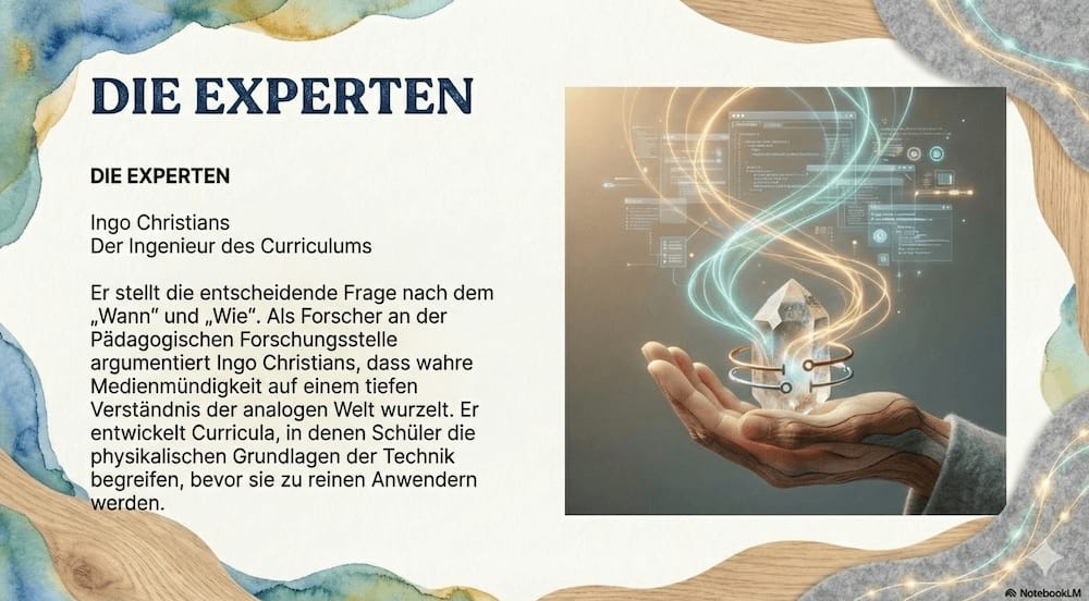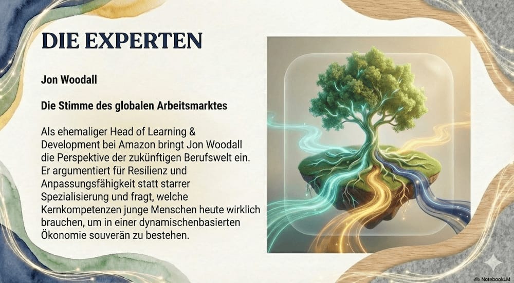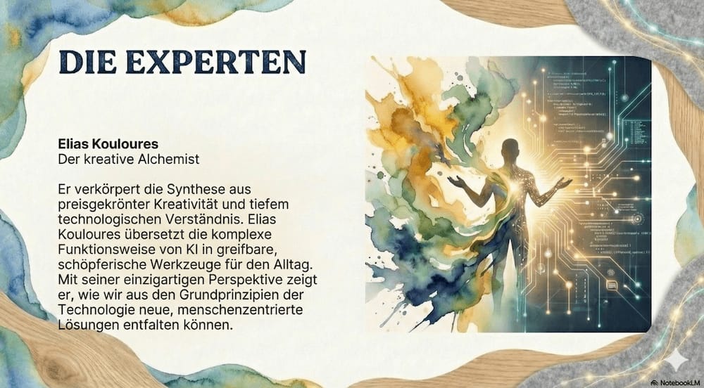 Die folgenden Bilder sind die 16 Seiten einer NotebookLM Präsentation, die ich mit nur einem Prompt erstellt habe. Zwar sind noch kleine Fehler drin, aber für 5 Minuten Arbeitsaufwand IMHO ganz gut und schön…