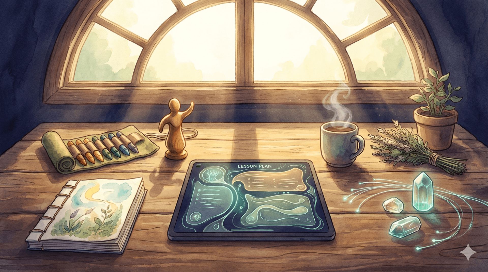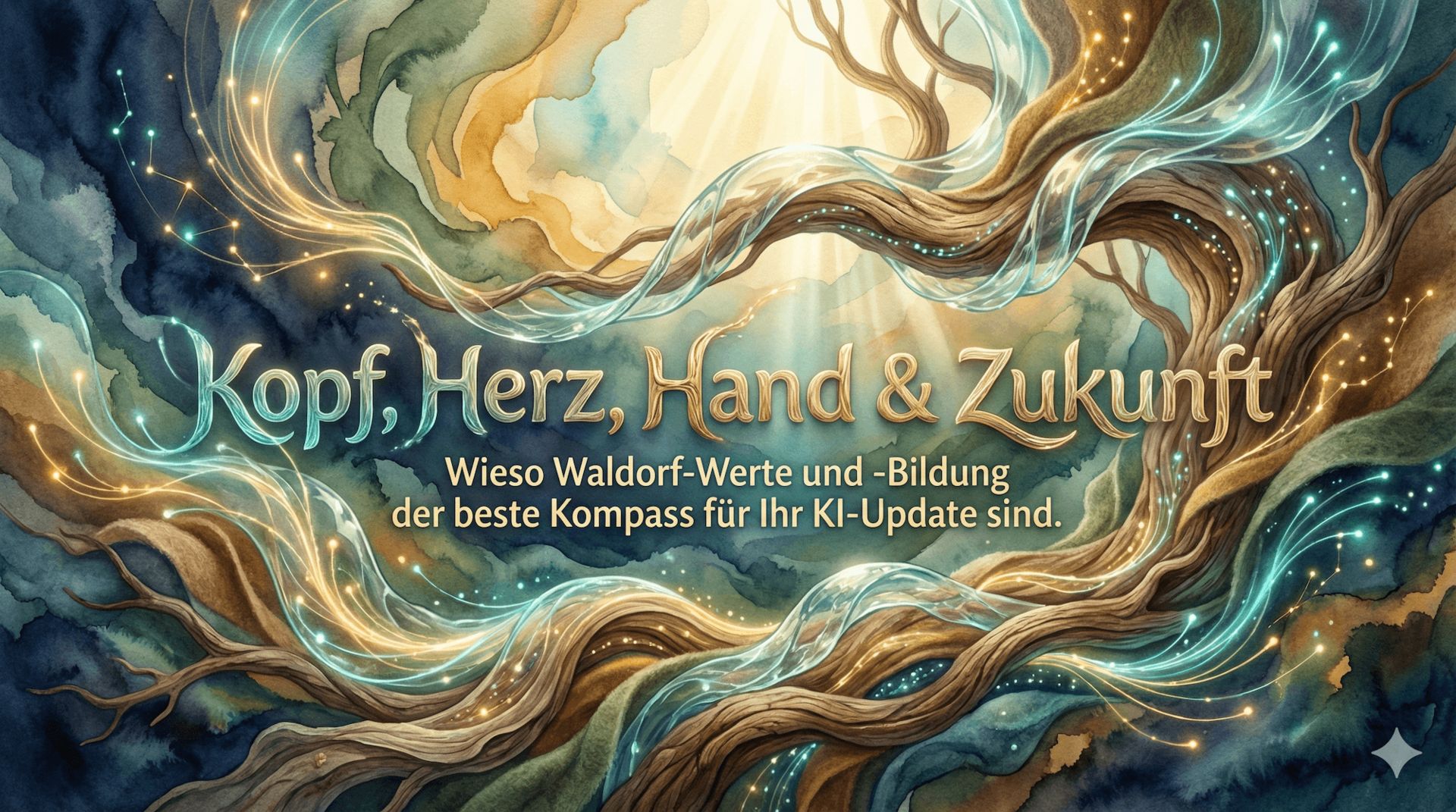 Dann bat ich KI mir ein visuelles Design zu erstellen, dass am besten zur Waldorf DNA bzw. Philosophie passt. Diesen Look nutze ich jetzt in allen Motiven…