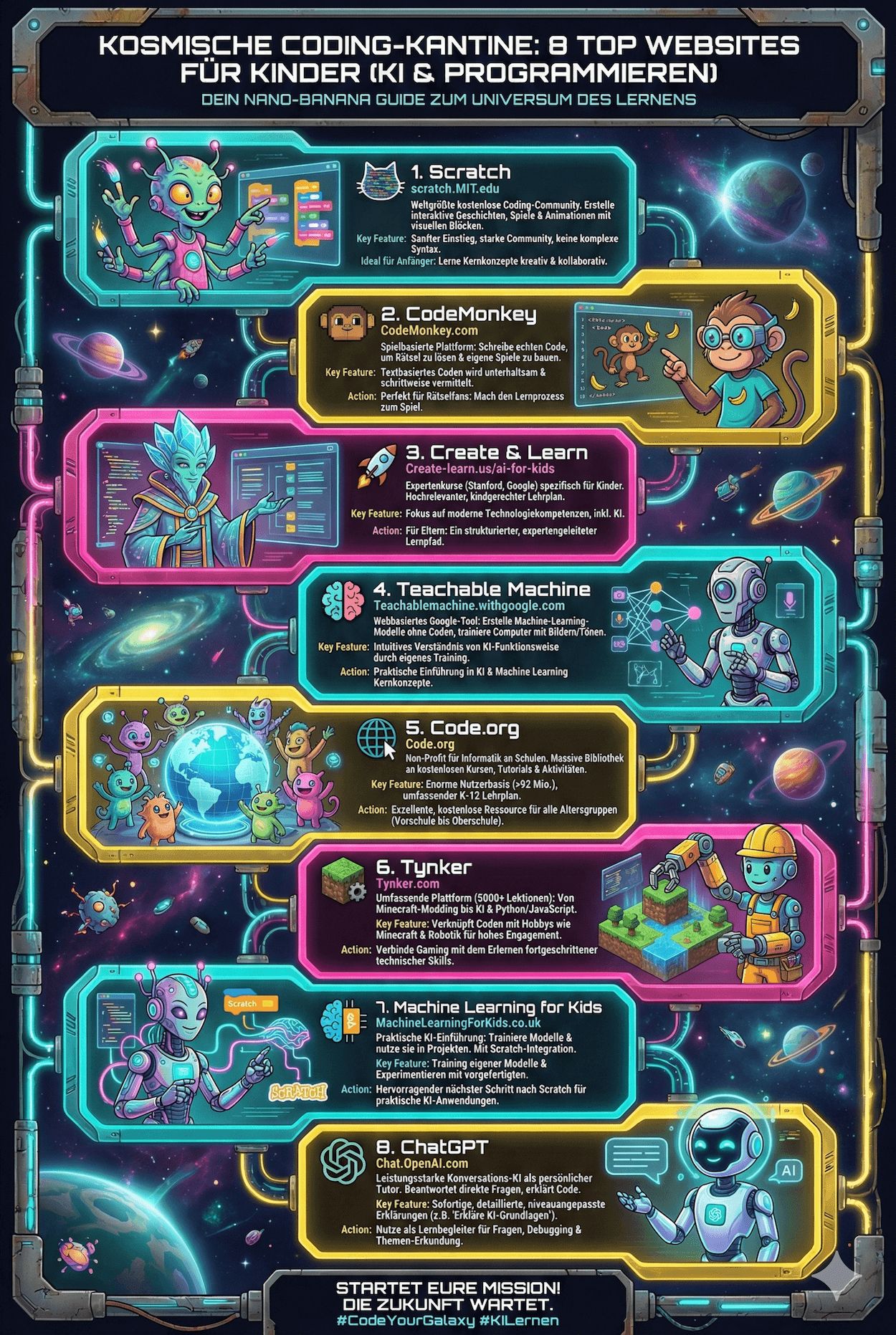 Darum habe ich diese Infografik für alle Eltern erstellt, die ihren Kindern einen echten Startvorteil verschaffen wollen. Ob mit Minecraft (Tynker) oder echten Stanford-Kursen (Create & Learn) – für jedes Alter ist was dabei. Speichert euch das ab! ✅
