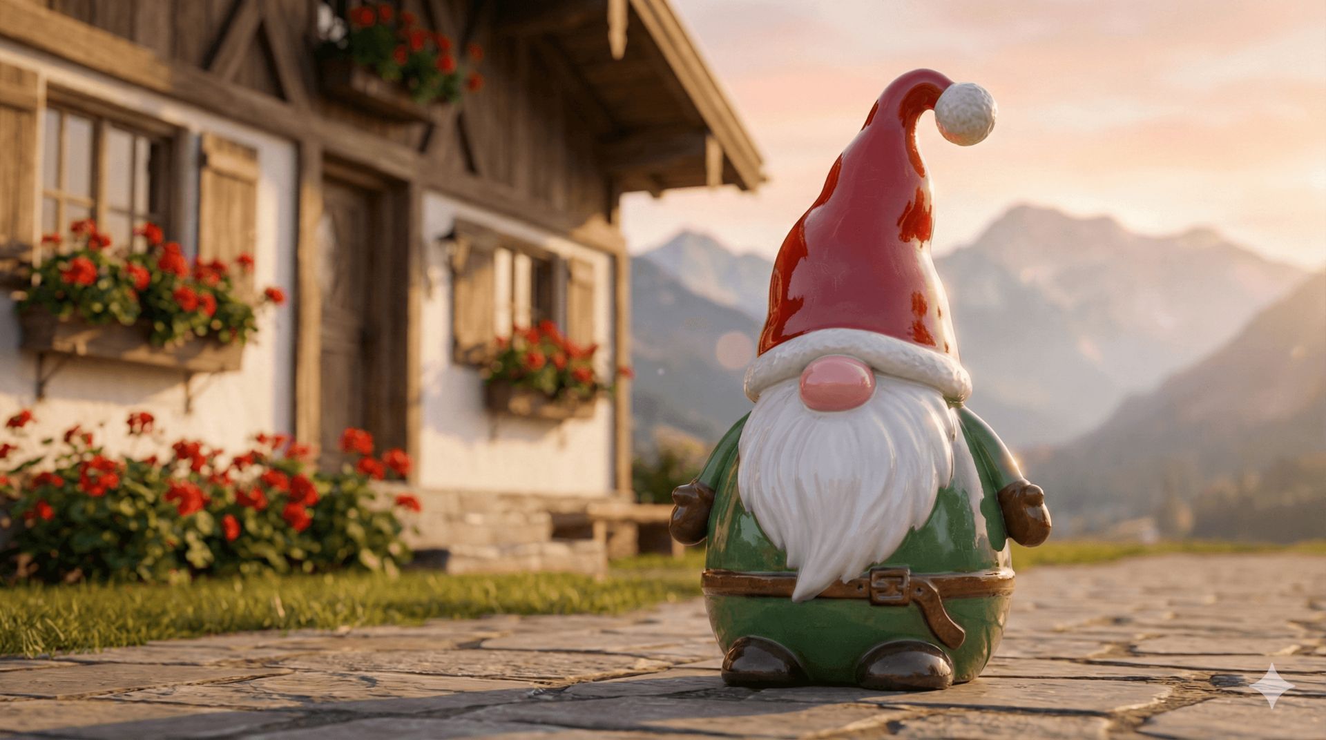 Eines unserer Kinder im Familienumfeld malte einen Gartenzwerg und ich habe ihn mit KI in wenigen Sekunden “zum Leben erweckt” (d.h. realistisch aufgehübscht).